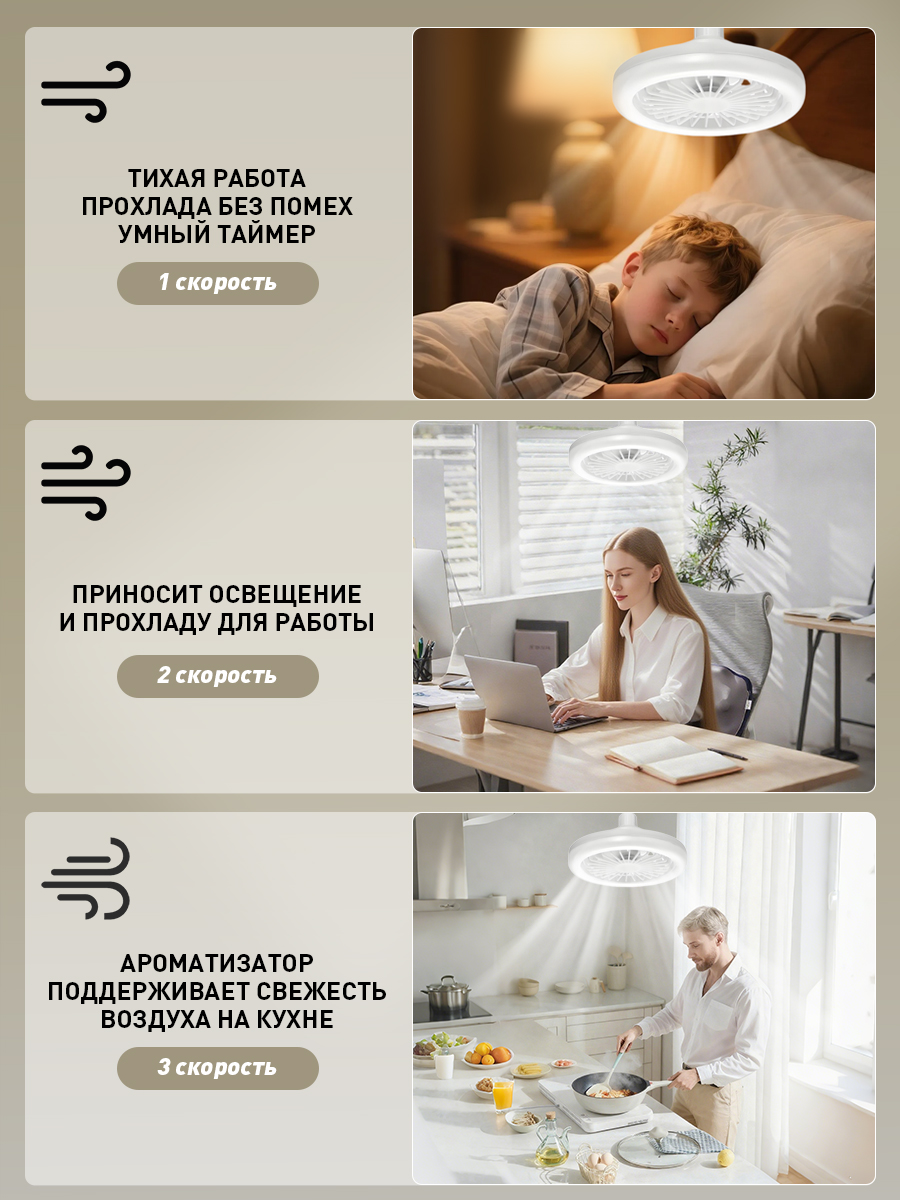 Уникальная люстра-вентилятор «Балтийский Светлячок» — идеальное решение для вашей кухни! Это устройство 2-в-1 сочетает в себе мощный потолочный вентилятор для эффективного охлаждения и современную светодиодную люстру для яркого равномерного освещения. Управляйте скоростью вращения и интенсивностью света с удобного ПУЛЬТА ДИСТАНЦИОННОГО УПРАВЛЕНИЯ, создавая идеальный микроклимат в любую погоду. Забудьте о духоте и плохом освещении — наслаждайтесь комфортом с «Балтийским Светлячком»!