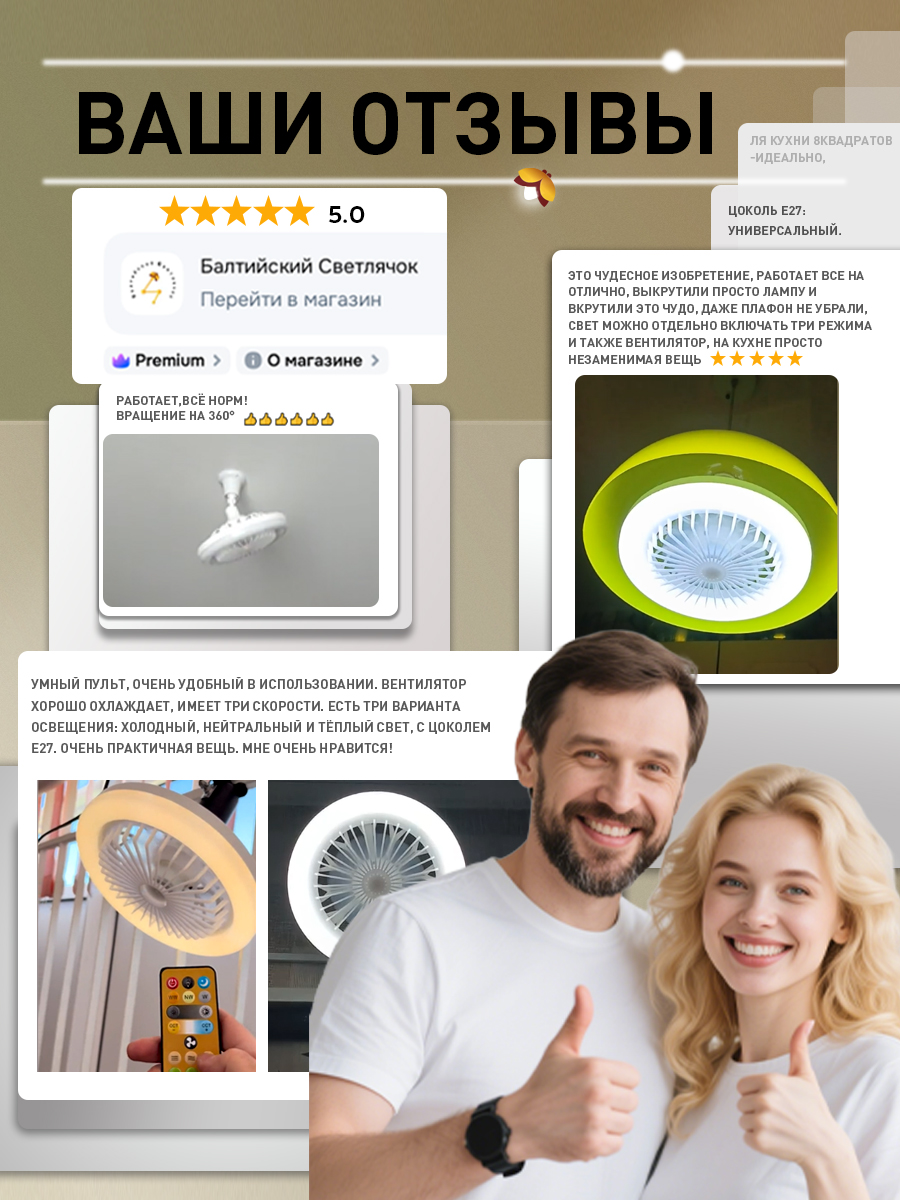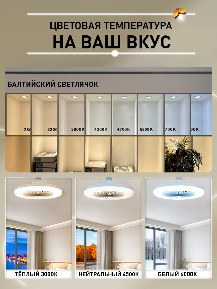 Вентилятор с люстрой на кухню Балтийский Светлячок : потолочный светодиодный светильник с пультом, охлаждение и освещение