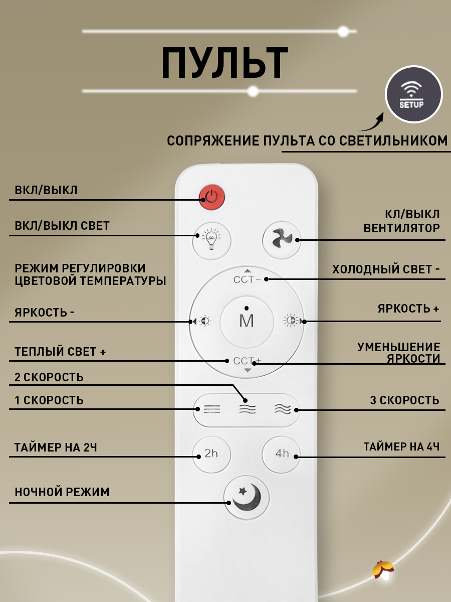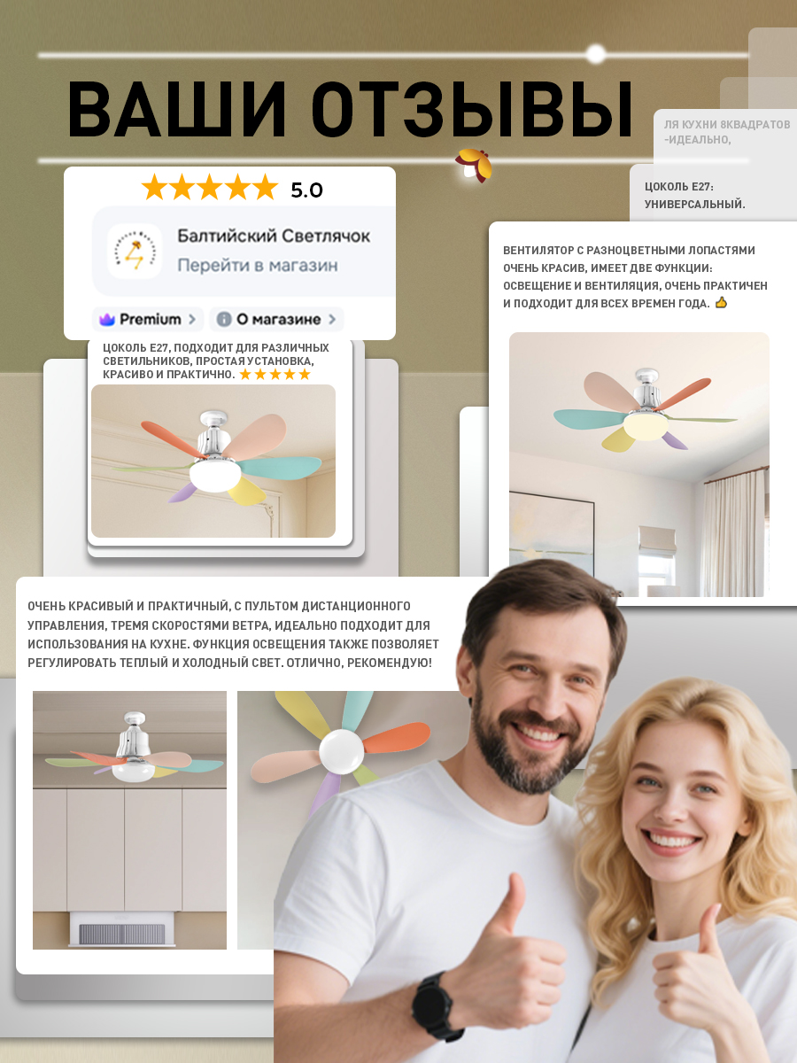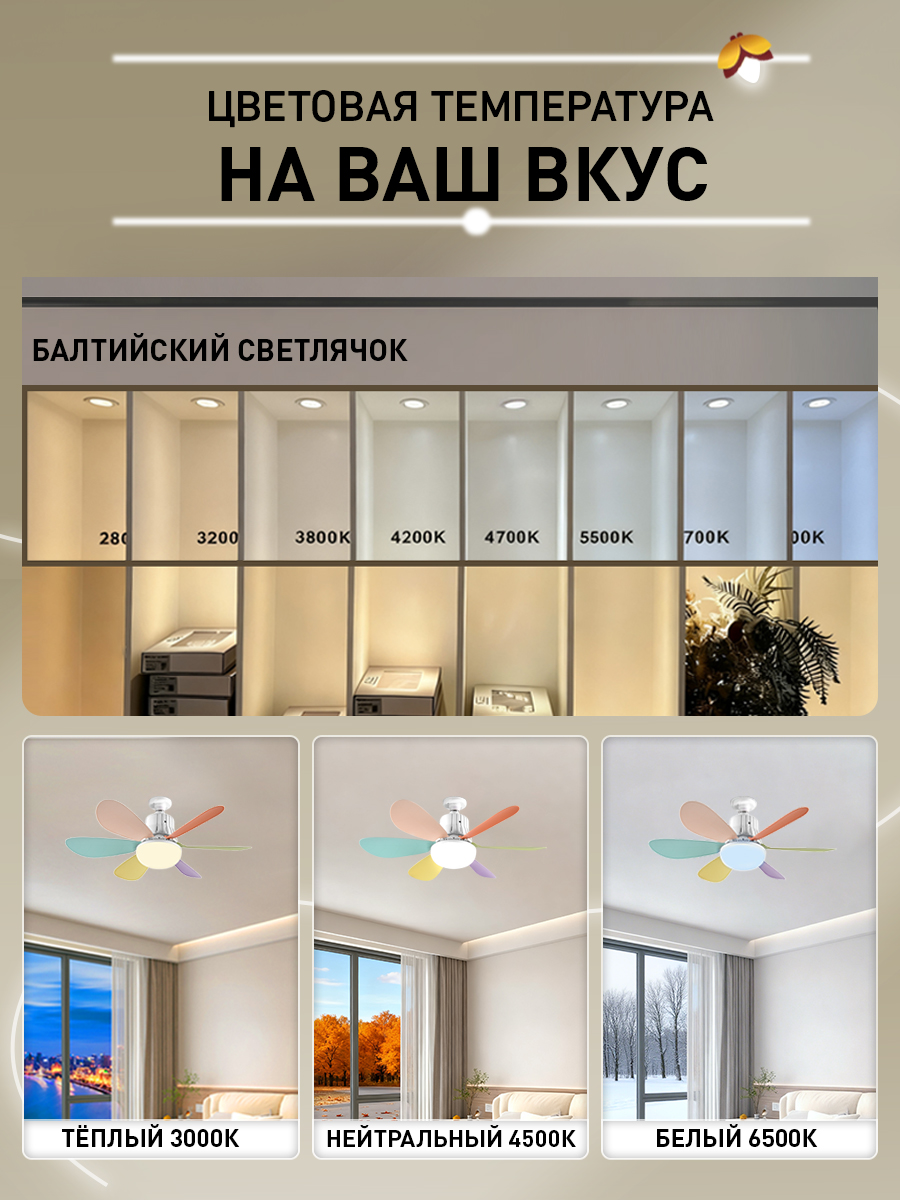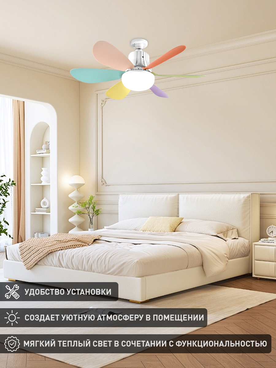Вентилятор-люстра потолочная с пультом управления для кухни и гостиной освещение и охлаждение в одном устройстве (бесшумный, 3 скорости)