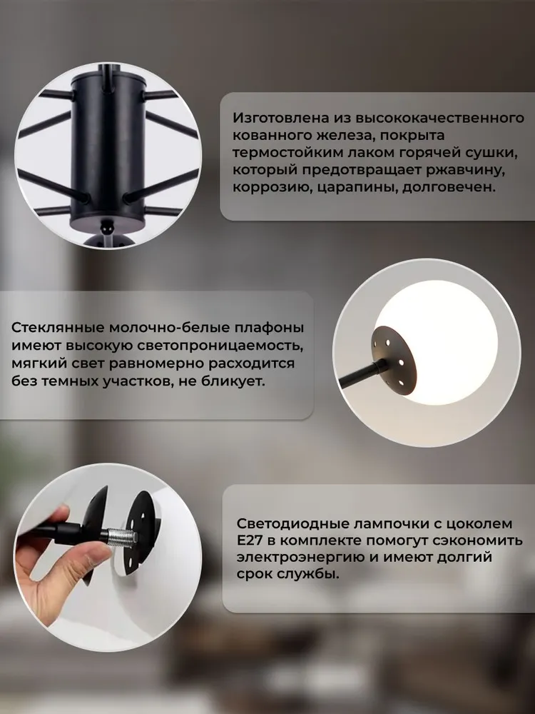 Подвесная люстра “Балтийский Светлячок” выполнена в элегантном черном цвете, что делает ее отличным дополнением для современных интерьеров. Она идеально подходит как для спальни, так и для гостиной, создавая уютную атмосферу.Эта потолочная лампа отвечает принципам скандинавского стиля с его минималистичным дизайном и функциональностью. Наличие накаливания позволяет достичь мягкого и теплого света, который наполняет пространство комфортом. Подвесной элемент добавляет изысканности, делая акцент на высоту потолка и визуально расширяя комнату.Модель поддерживает использование стандартных ламп типа E27, что обеспечивает удобство при замене источника света. Люстра отличается простотой установки и ухода, что делает ее практичным решением для любого дома.Сочетание черного цвета с лаконичными формами позволяет легко интегрировать изделие в различные стилистические решения, от современных до классических. Она прекрасно впишется в интерьер с натуральными материалами, такими как дерево и текстиль, подчеркивая общую гармонию пространства.Вне зависимости от выбранного места установки, эта люстра станет стильным акцентом вашего интерьера. Подвесная конструкция позволит не только осветить комнату, но и добавить ей выразительности и индивидуальности. Выберите “Балтийский Светлячок” для создания уюта и стиля в вашем доме.