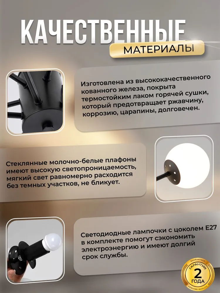 Элегантный светильник, выполненный в белом и золотом цветах, станет стильным дополнением интерьера любой комнаты. Его дизайн в скандинавском стиле идеально впишется в зал, кухню или гостиную. Благодаря сочетанию классических форм и современных акцентов, он придаст помещению атмосферу уюта и комфорта.Светильник состоит из множества шаров, которые создают мягкое рассеянное освещение. Это делает его подходящим не только для основного освещения, но и для создания уютной обстановки в детской или ванной комнате. Он легко интегрируется в различные стили интерьеров, включая лофт и минимализм.Потолочные люстры такого рода привлекают внимание своим простым, но эффектным дизайном. Их можно использовать как центральный элемент декора или комбинировать с другими осветительными приборами для создания интересных световых решений. Белая отделка придает легкость конструкции, а золотые детали добавляют изысканности.Установка данного светильника не потребует много времени и усилий благодаря продуманной системе крепления. Такой элемент освещения не только украсит пространство, но и создаст необходимый уровень яркости для комфортного пребывания.Идеален для тех, кто ценит гармонию в интерьере и предпочитает современный подход к оформлению пространства. Этот светильник станет удачным выбором как для домашних условий, так и для общественных заведений. С ним ваш интерьер заиграет новыми красками!