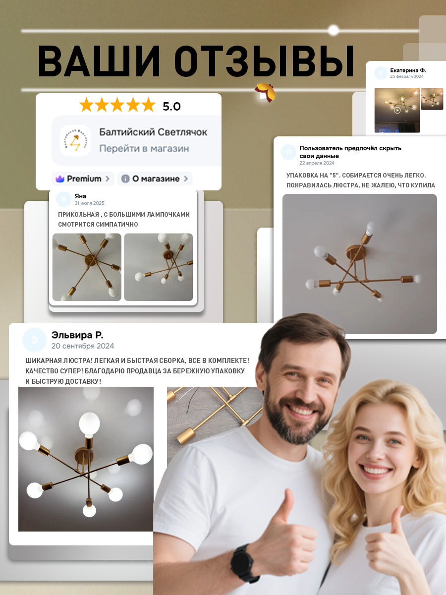 Люстра «Балтийский Светлячок» — универсальное освещение на 6 рожков