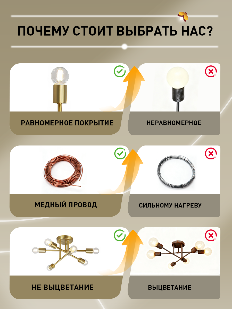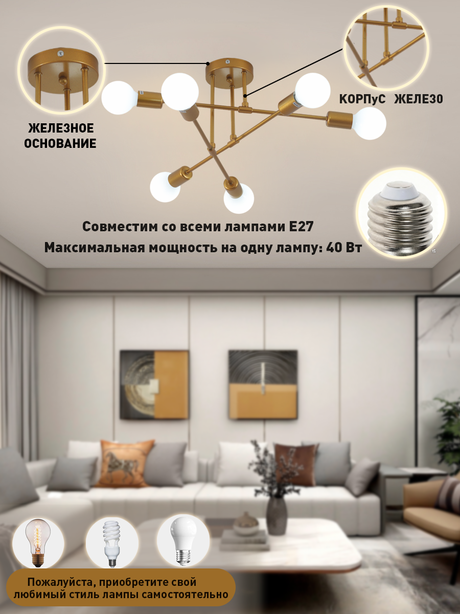 – 6 патронов E27 (подходят светодиодные и галогенные лампы)