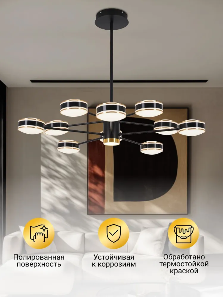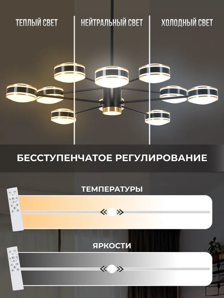 Умная люстра с дистанционным управлением! 11 светодиодных модулей, 53 Вт. Пульт ДУ и мобильное приложение позволяют регулировать яркость и выбирать из 3 режимов освещения. Идеально подходит для гостиной, спальни и кухни. Прочная стальная конструкция и медная проводка обеспечивают надежность и безопасность. Гарантия 2 года.