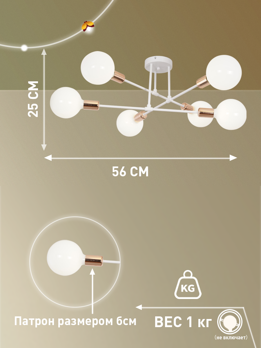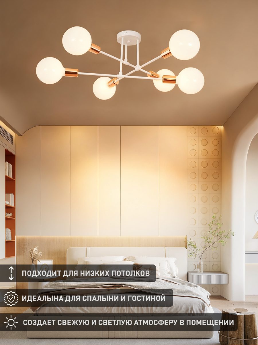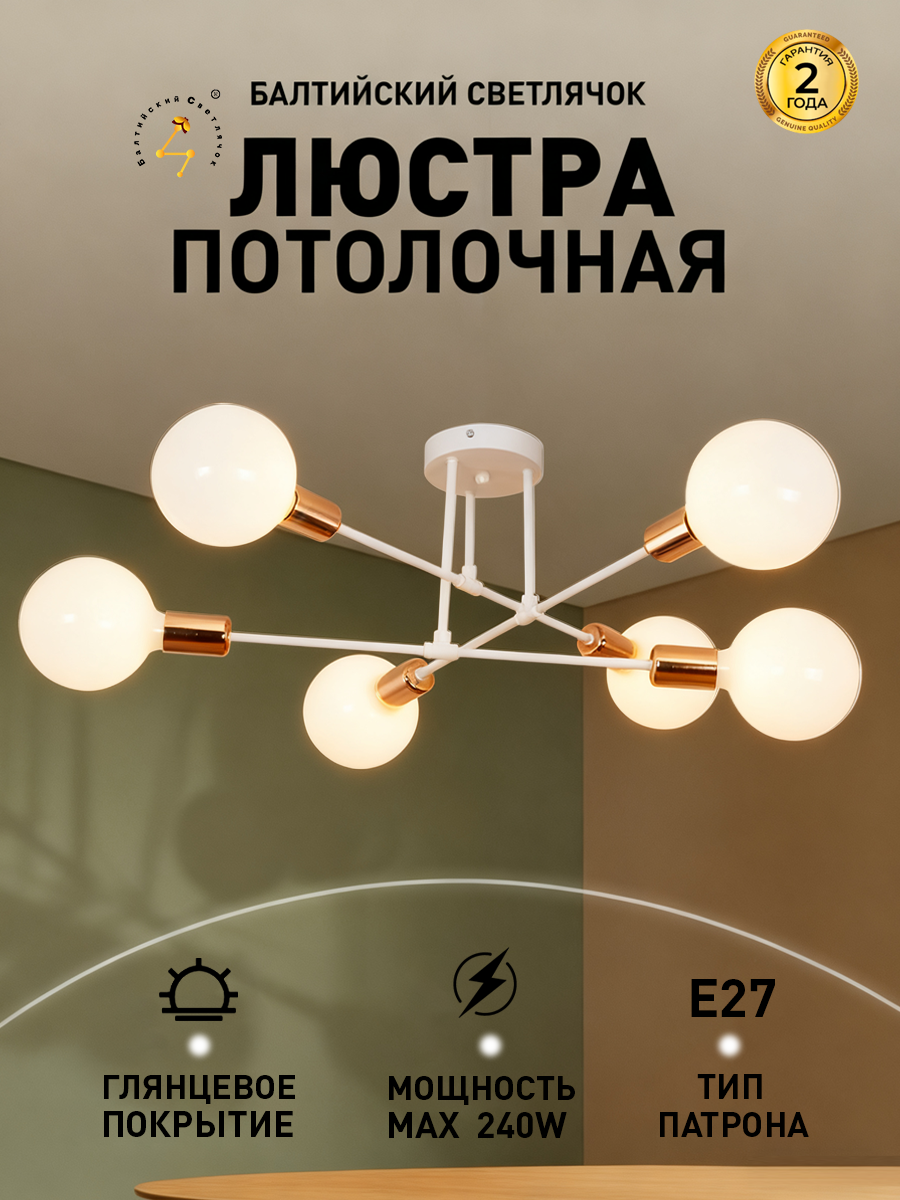 Люстра потолочная Балтийский Светлячок в скандинавском стиле для гостиной 6 рожков без плафонов