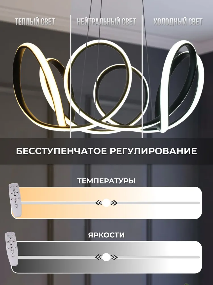 Представляем Вам люстру подвесную, которая станет настоящим украшением вашего интерьера. Она идеально подойдет как для спальни, так и для гостиной и зала, добавляя в ваш дом уют и стиль. Светильник изготовлен из кованного железа, что придает ему особую прочность и надежность. Акриловый плафон и светодиодная лента создают потрясающий световой эффект, который наполнит ваше помещение светом и теплом. Благодаря современному дизайну в стиле лофт, эта металлическая люстра станет не только источником света, но и стильным акцентом в вашем доме, даже на натяжных потолках. Пульт, входящий в комплект, позволяет вам выбрать один из трех режимов свечения в зависимости от ваших предпочтений и настроения. Светодиодная технология обеспечивает эффективное использование энергии, что делает использование экономичным и экологичным выбором. Благодаря широким функциональным возможностям, качественным материалам и мощности 73Вт, площадь освещения достигает 34 кв. м. Неважно, какой стиль у вас выбран – современный или классический, такое освещение прекрасно впишется в любое пространство, добавляя шарм и элегантность. Мы уверены, что станет не просто предметом убранства, а настоящим произведением искусства, которое будет радовать вас каждый день. Приобретите этот уникальный светильник прямо сейчас и создайте неповторимый атмосферу в вашем доме!