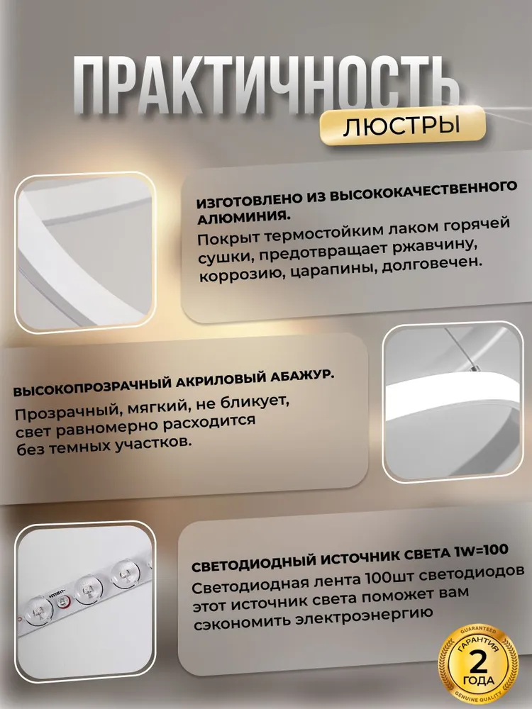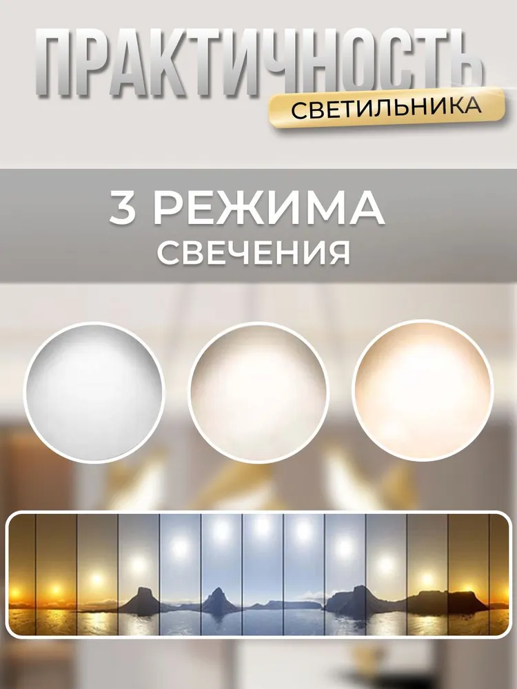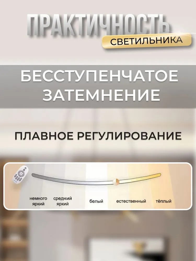 Режим: 5 режима свечения с пультом (Теплый, нейтральный, холодный, бесступенчатое управление, ночной свет)