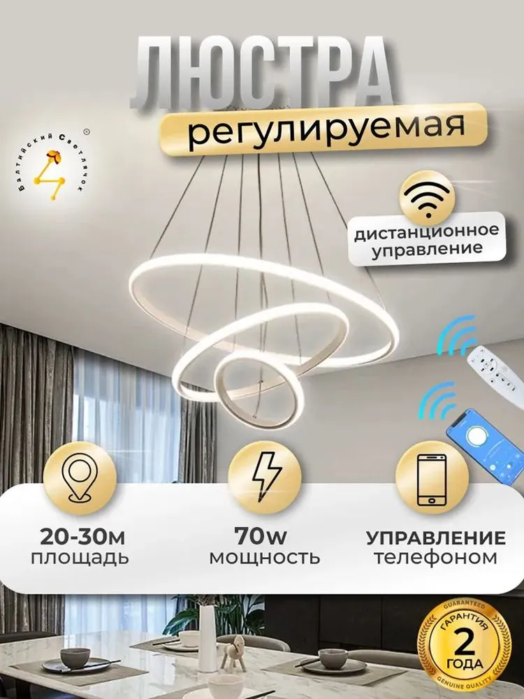 Люстра потолочная светодиодная кольца Балтийский Светлячок, LED 81Вт