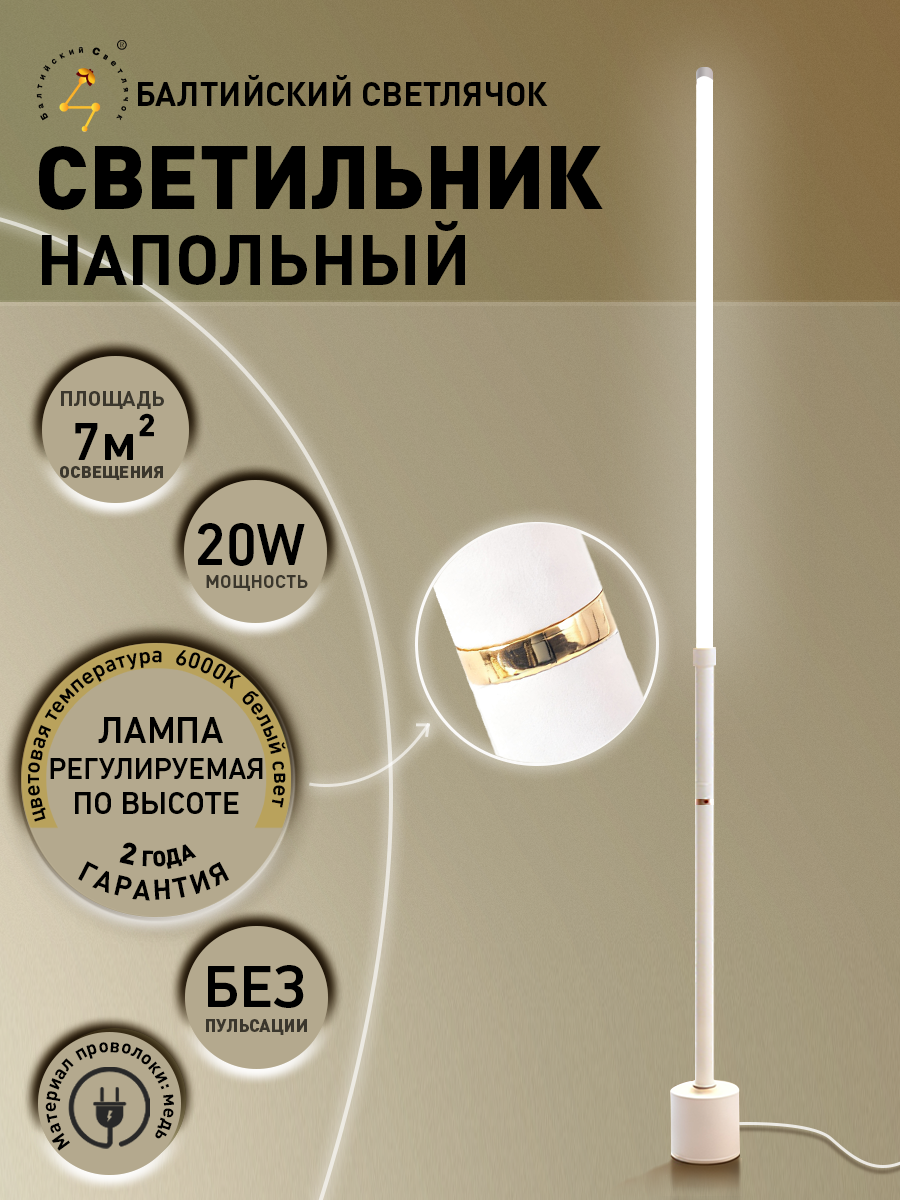 Балтийский Светлячок Высокий Напольный Светильник-Торшер 172 см белое