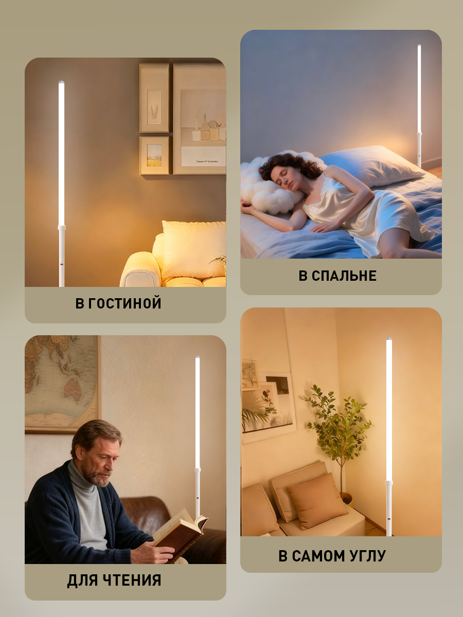 Здравствуйте! Элегантный белый торшер «Балтийский светлячок» идеально сочетает мощное светодиодное освещение с функцией мягкого ночника. Управление осуществляется с помощью пульта ДУ: переключение между нежным ночным освещением и ярким светом для чтения (регулировка яркости не предусмотрена). Это идеальное решение для создания уютной атмосферы в спальне, использования в качестве безопасного ночника в детской или в качестве современного декоративного элемента в гостиной. Этот многофункциональный торшер органично впишется в любой современный интерьер.